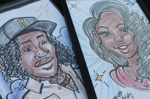 A caricature is a drawing where features are artistically exaggerated. They’re unique gifts and are usually completed in just a couple of minutes.